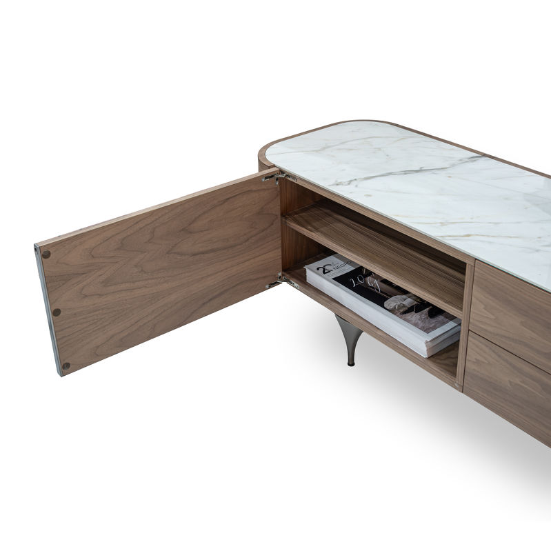 Тумба под TV Legacy, отделка 813 натуральный матовый орех, M03 бронза, Calacatta gold lux стеклокерамика