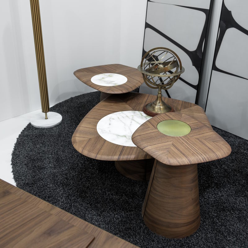 Журнальный столик, отделка 813 натуральный матовый орех, стеклокерамика calacatta gold lux