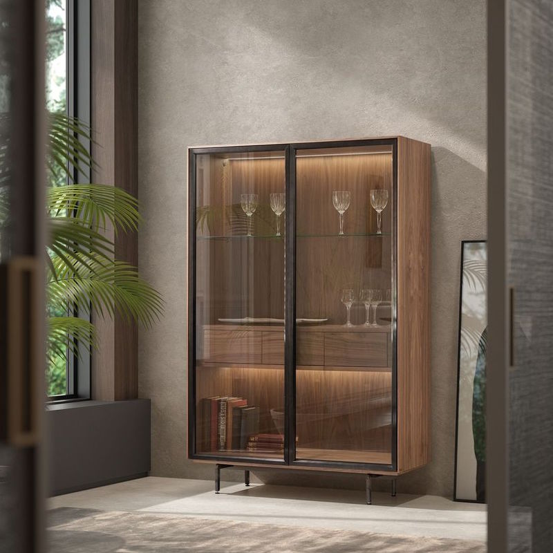 Витрина Link, отделка 813 натуральный матовый орех, М03 бронза